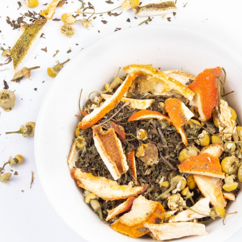 Esta mezcla equilibra la energía suave del Té Verde con el toque calmante de la manzanilla, mientras la menta y los tonos cítricos de naranja y limón dan un sabor único. Es la infusión ideal para resetear el día y sentirte ligero.