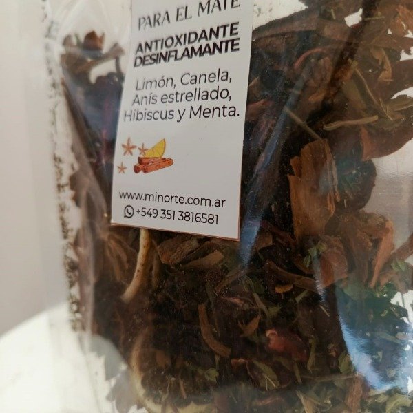Pack de 50 gr, compuesta por: limón, anís estrellado, canela, hibiscus y menta.